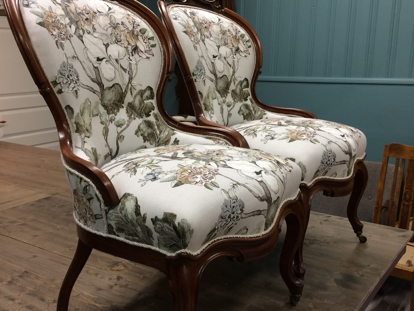 Tradisjonell stopping ETTER: Nydelige lenestoler trukket i et blomstret linstoff fra Mulberry. Setet er stoppet om. Etter: Toppstykket på lenestol er reparert av møbelsnekker. FØR: Lenestol før omstopping og trekking ETTER: Stolene har her fått ny tradisjonell stopping av setene og er trukket med møbelhud av god kvalitet. FØR Del denne siden med andre! Ditt navn: Din epost: Mottakers navn: Mottakers epost:
